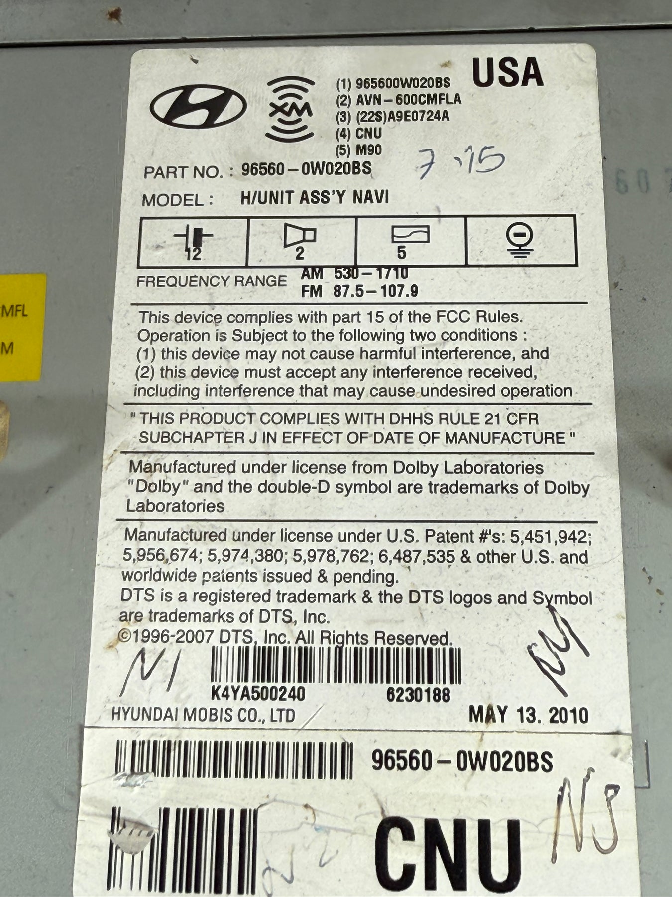 Hyundai Santa Fe Infinity Radio Navigation GPS MP3 CD Player XM Bluetooth 11 12 OEM