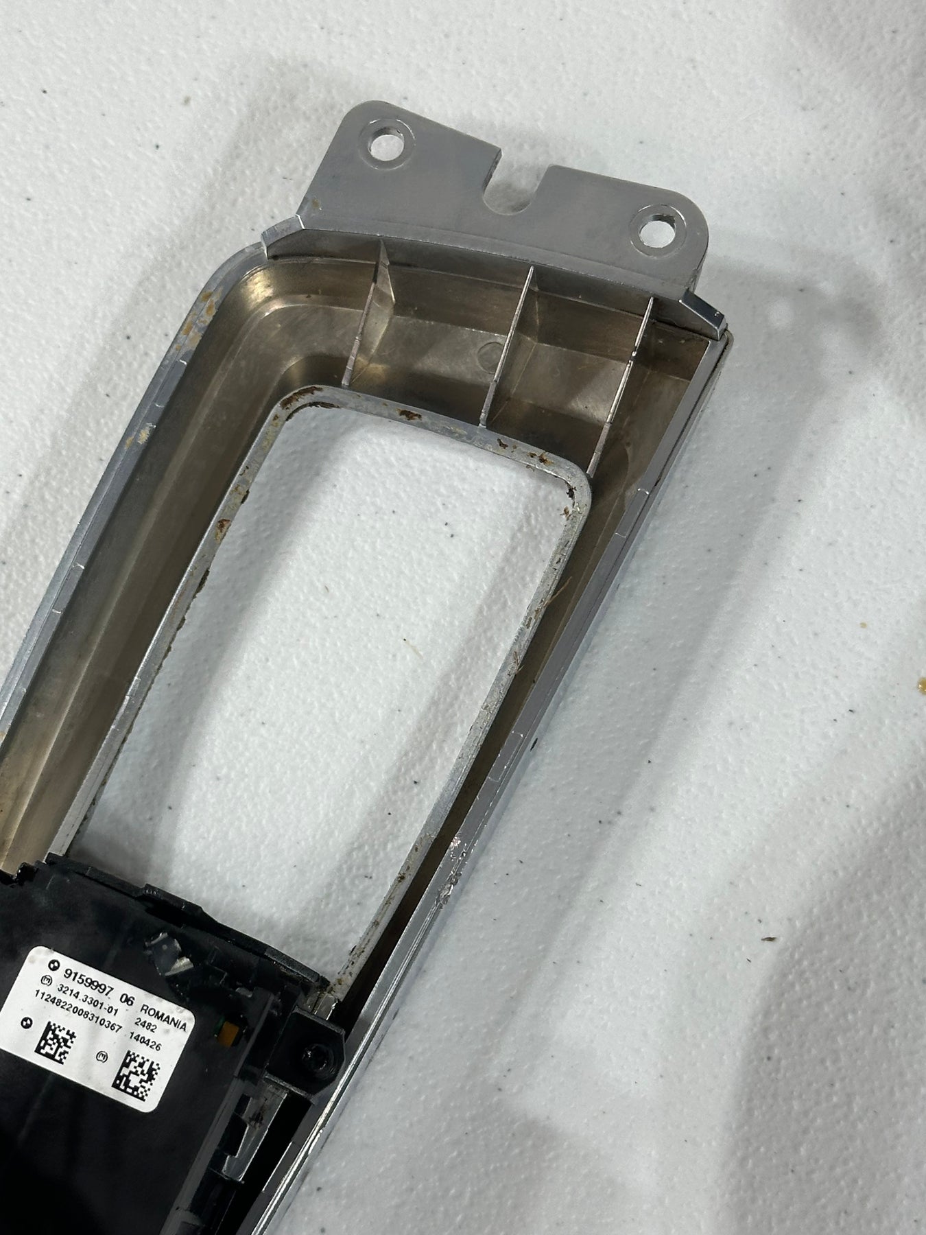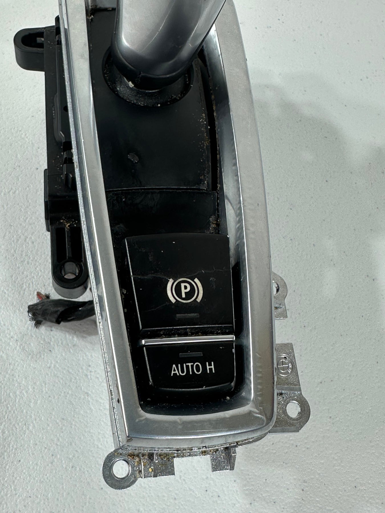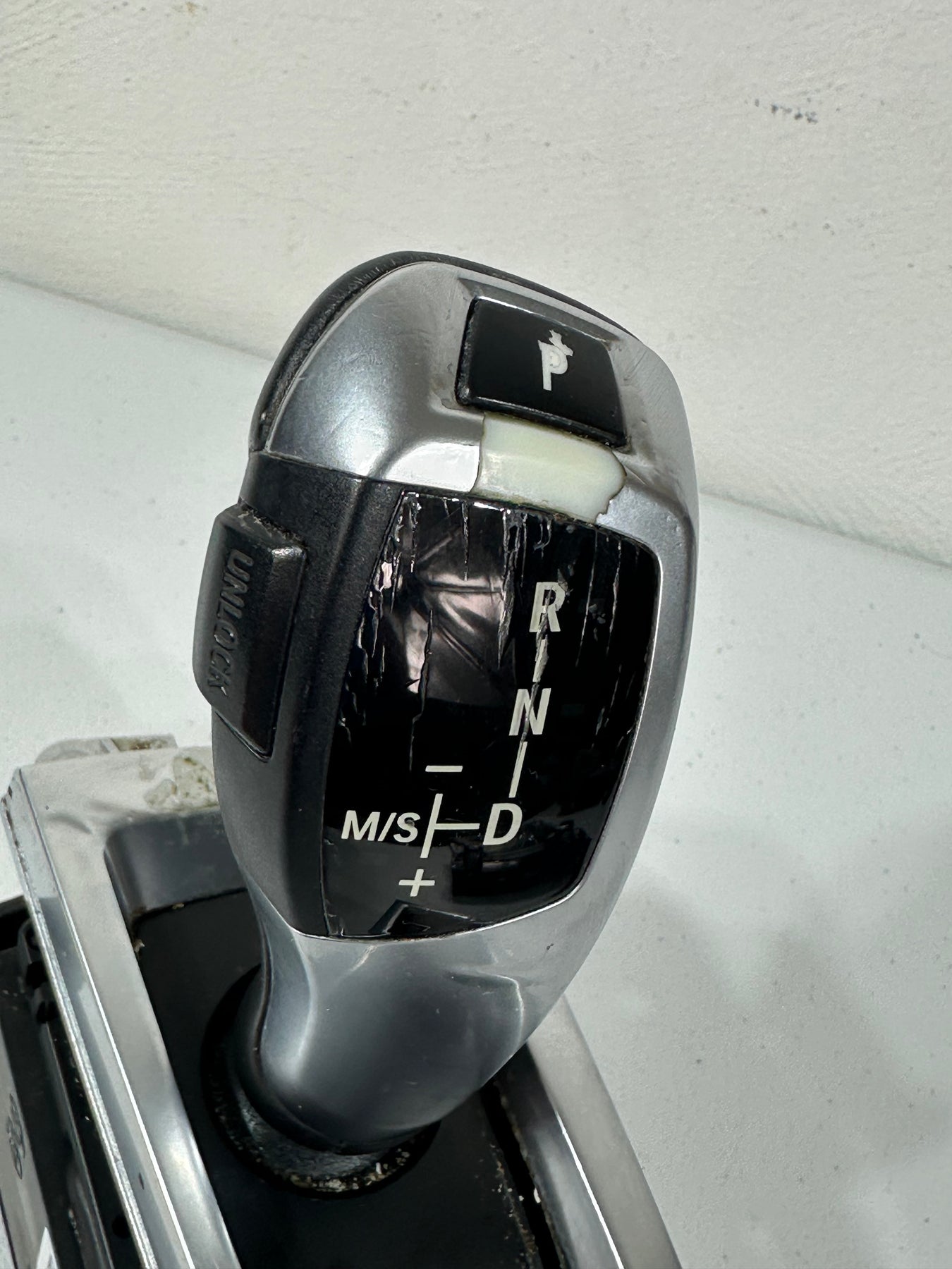 Elevate your driving experience with the OEM 2009-2016 BMW 528i 740i F07 F10 F01 F02 Auto Transmission Gear Selector Shifter. Crafted with precision in Germany, this genuine shifter knob is designed to provide a seamless shift for your vehicle's automatic transmission. A combination of black leather, aluminum, and plastic materials ensures durability and a premium feel.