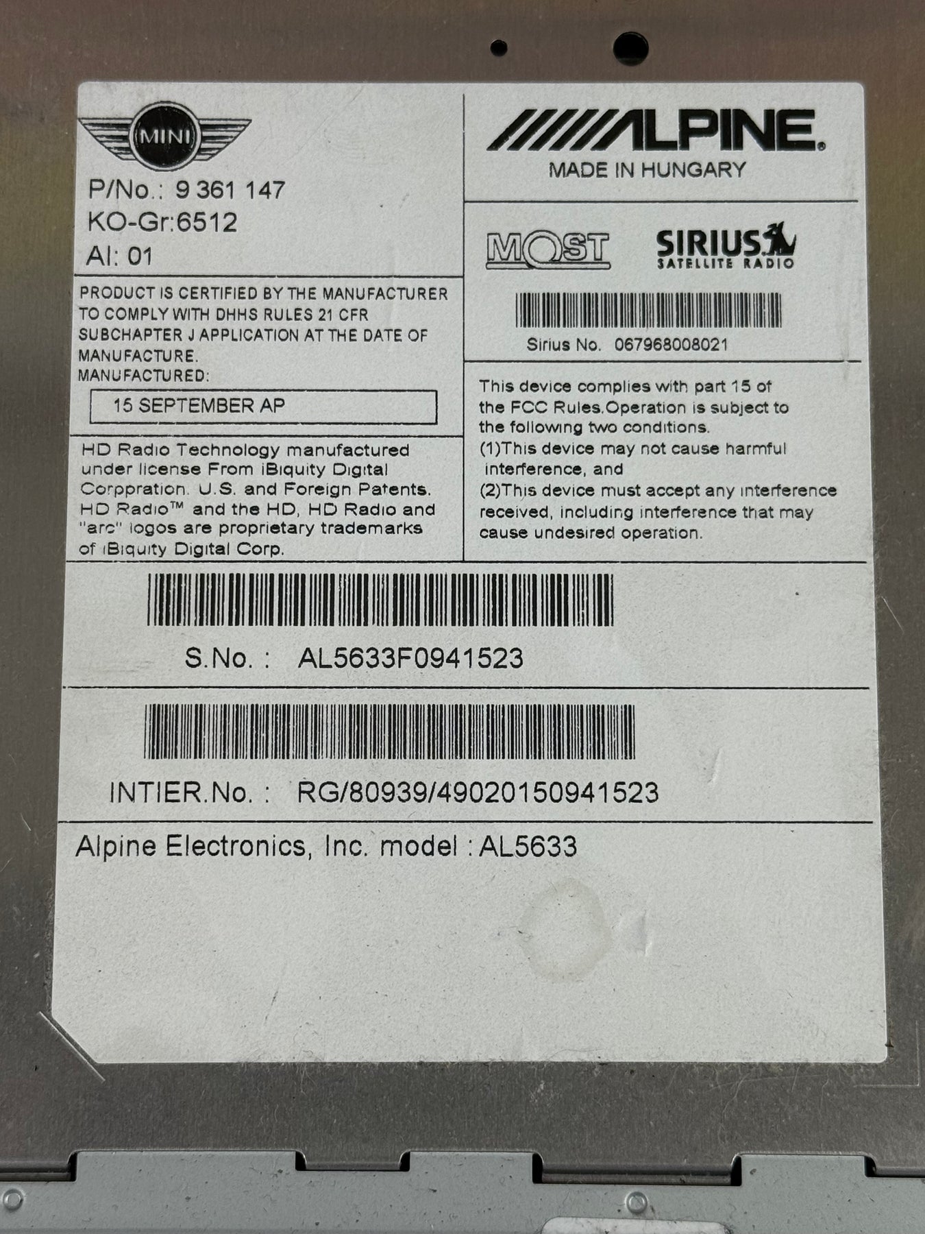 2011-2016 Mini Cooper Countryman Am Fm Cd Player Radio Receiver OEM
